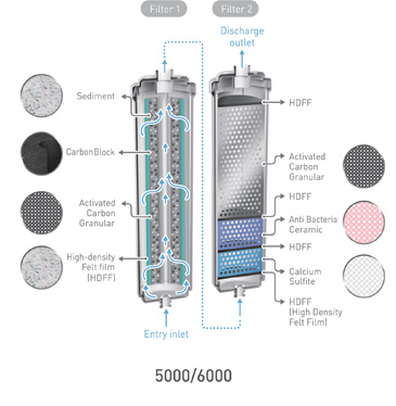| 2. Carbon block | 2. Advanced Ultra Hollow Membrane (UF filter) | |