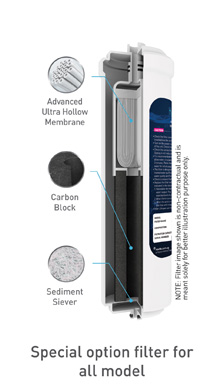 | 2. Carbon block | 2. Advanced Ultra Hollow Membrane (UF filter) | |